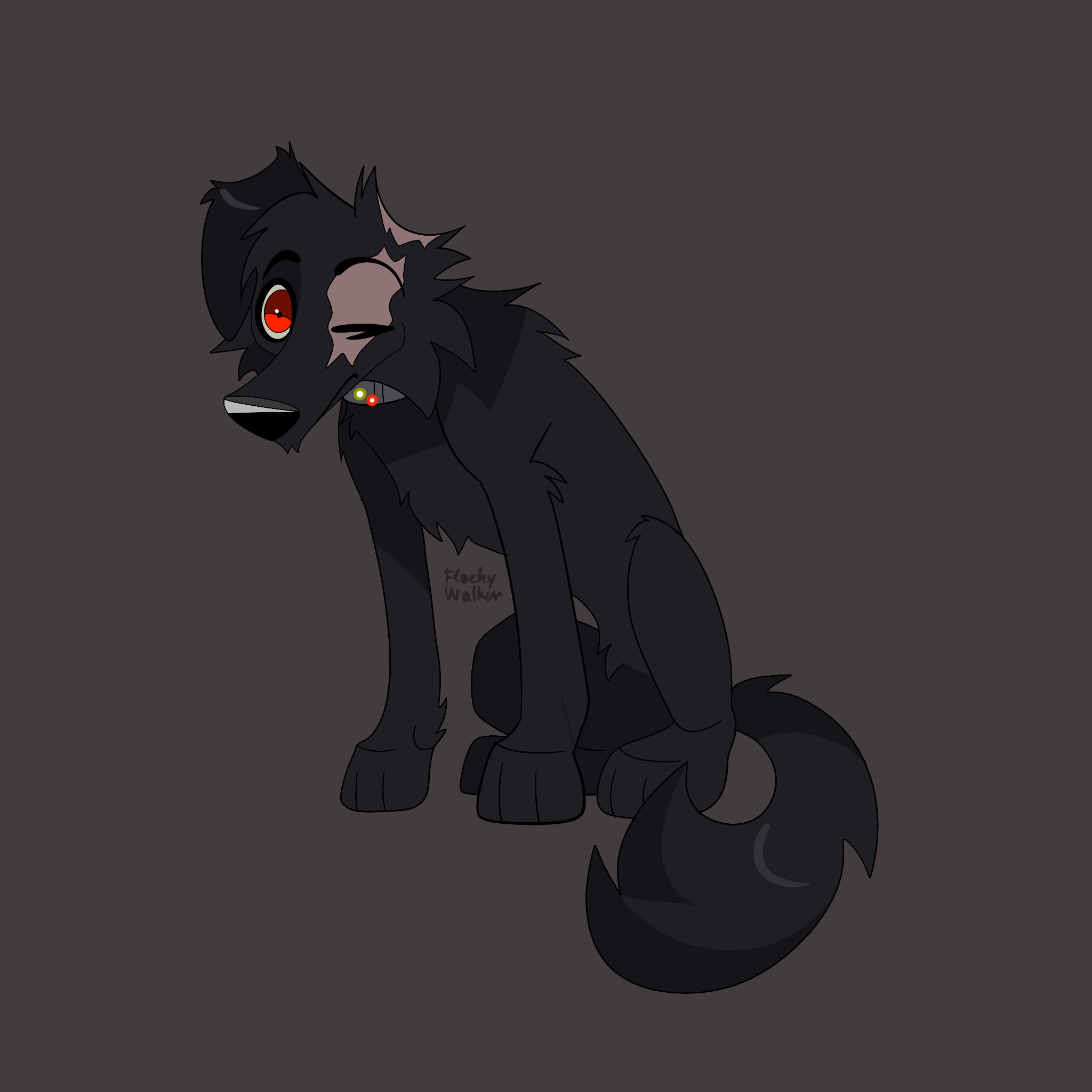 Schwarz is a huge Doberman and Newfoundland mix. He no longer has a right ear and a right eye. His fur is shiny and quite long. He works for the Storms but still hasn't gotten his Storm name and wears this kind of electronic collar. He almost never speaks, he has a very cold character, he shows almost no emotion.
