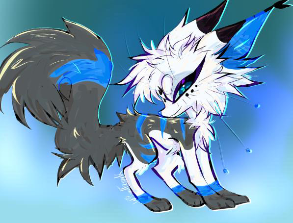 She has a very bushy tail, a big head, small paws and on her whiskers ends, we can see small blue pearls, it is indeed pollen. She doesn't talk unlike all my characters, she just meows.