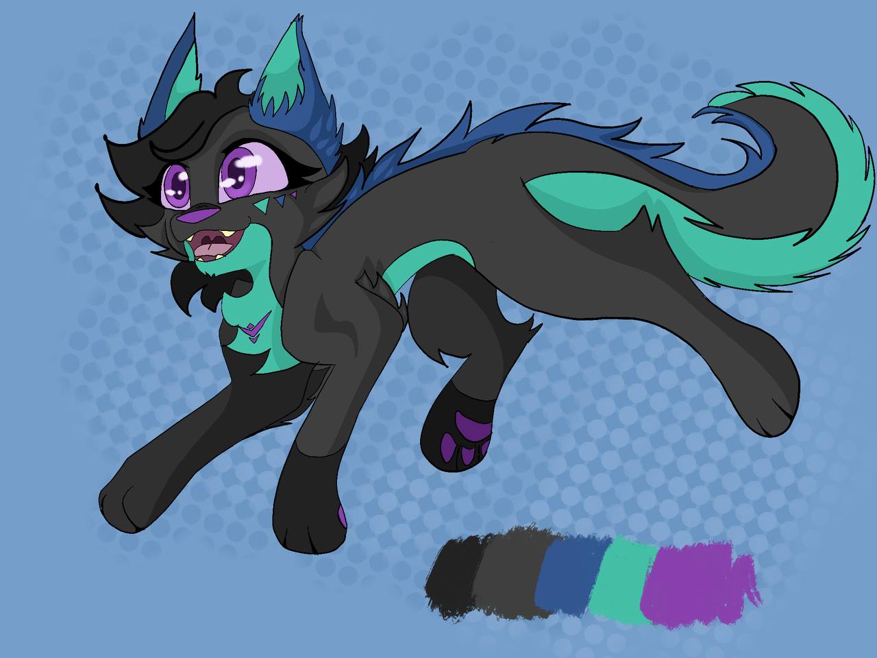 Sapfir is a really beautiful wolf with a with voluminous fur. She has gorgeous blue spots on her black fur :0. Her beautiful purple eyes glow in the dark and you can see stars in them, she has marks under her eyes and on her chest that signify the secret power she inherited from her magical ancestors. She is very nice but nobody likes her because of her magic powers, but nobody knows that she is the descendant of the royal family of Alma. (Don't worry, I did it on purpose, read her backstory now 😏)