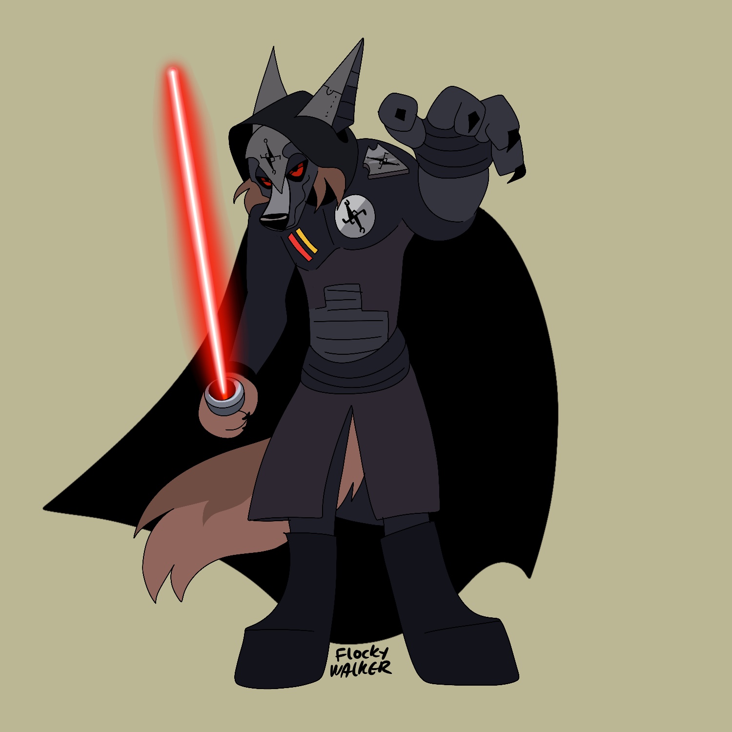 After all the fights and wars, he lost limbs and was greatly injured so he replaced his invalid body parts with mechanical and robotic ones. You could say it's a half-robot dog. He always wears clothes, unlike the other characters. He also has a black cape.