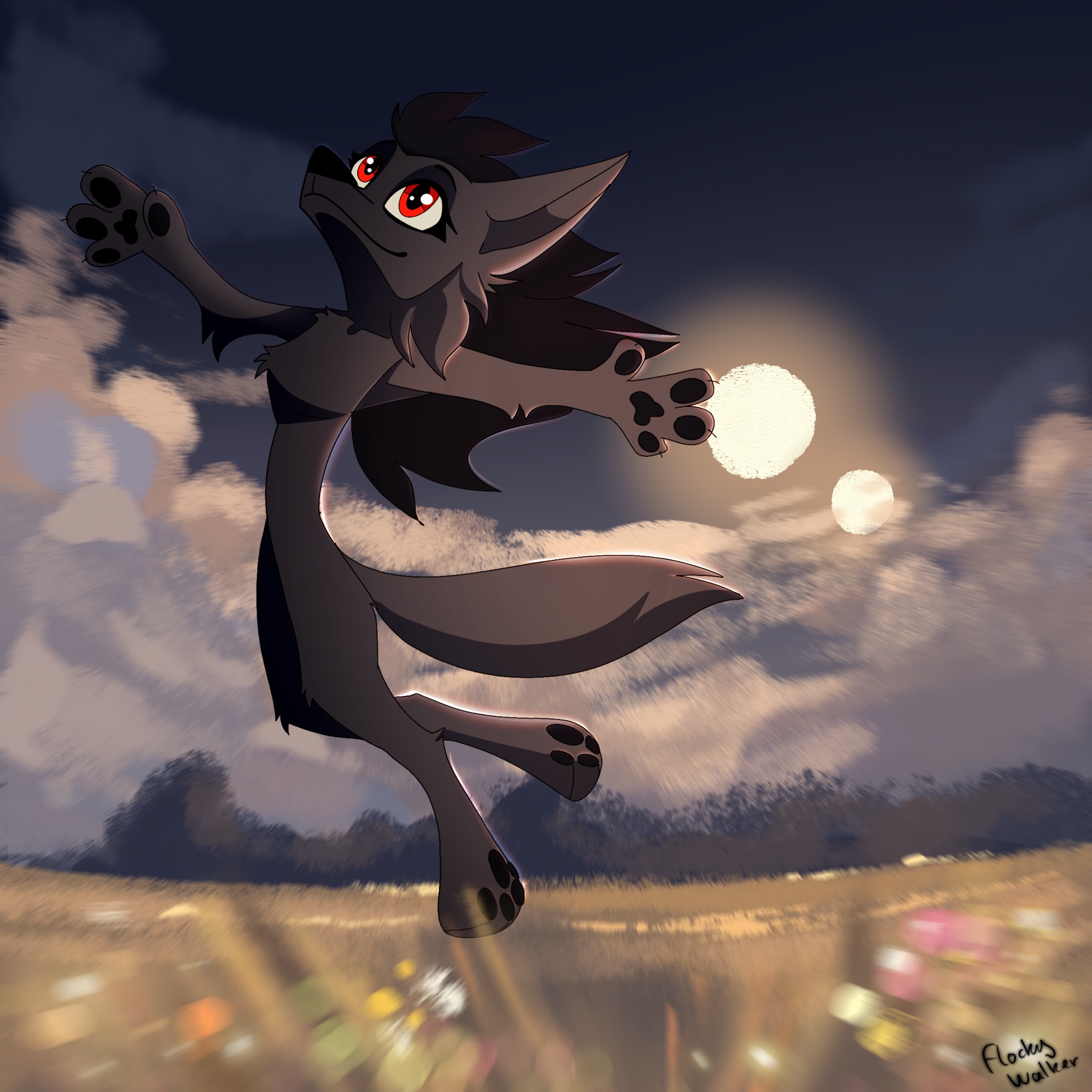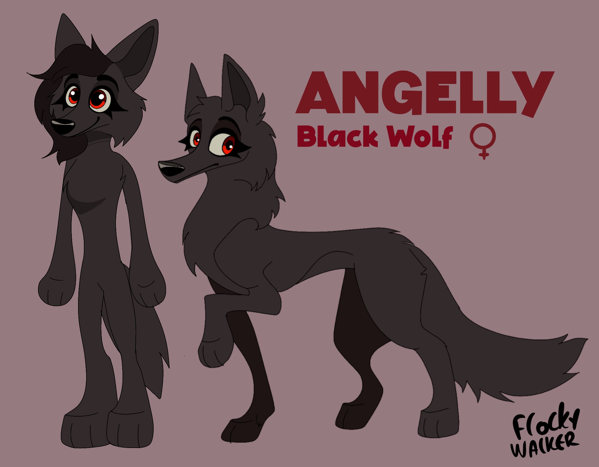 Angelly is a very small black wolf with red eyes. She has long black hair. She has smooth and beautiful fur. Angelly is very sensitive but keeps all her emotions in her head.